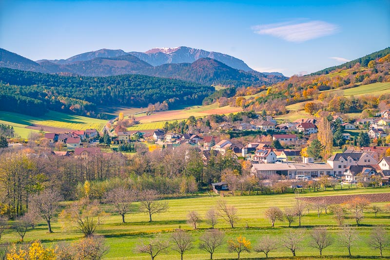 Winzendorf, with Bucklige Welt and Wechsel in the background.