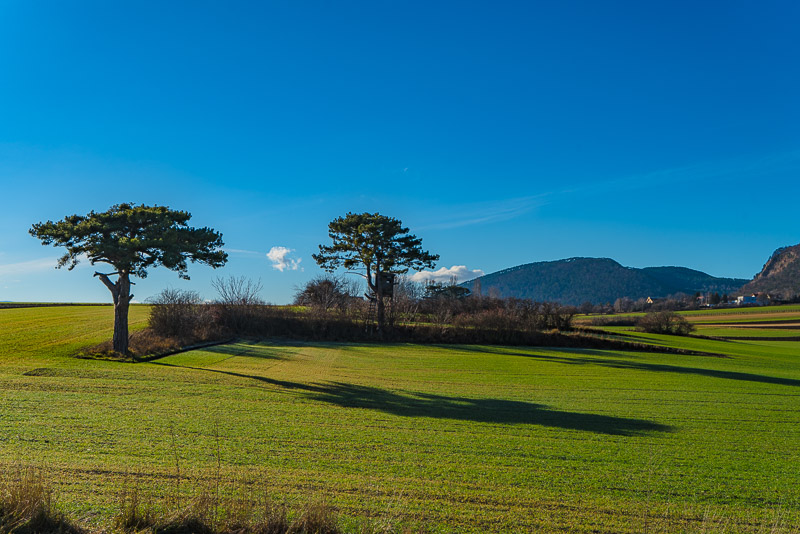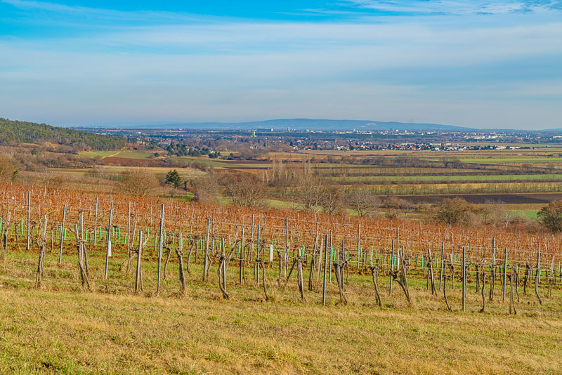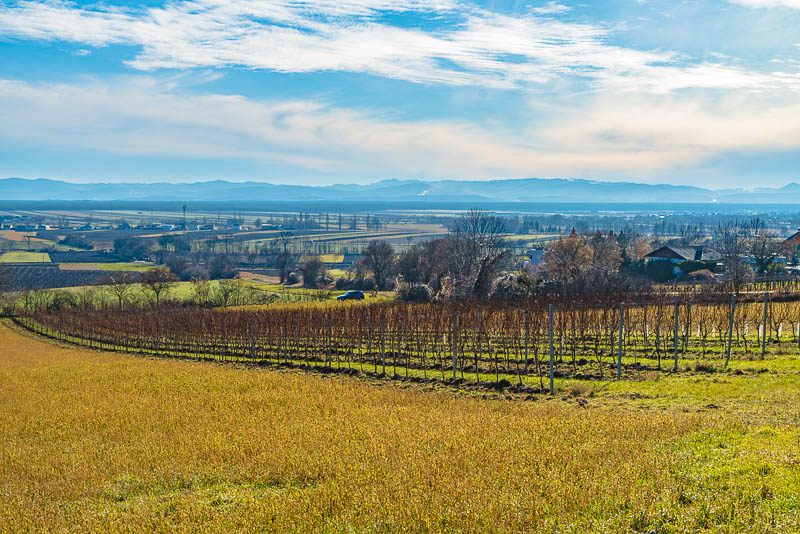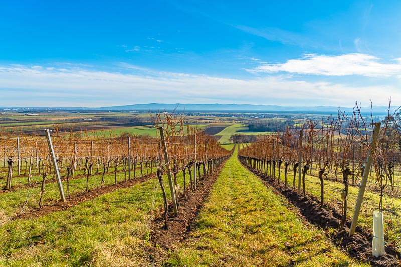Wonderful weather, though cold. From the outskirts of Winzendorf, we first walk along the upper end of the vineyards.