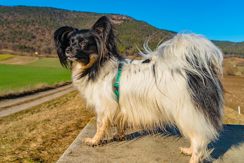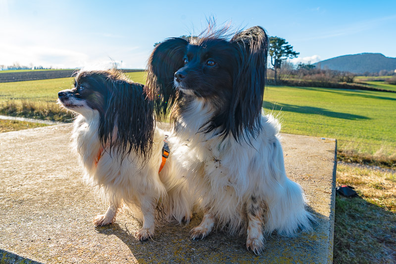 A concrete base on the dam invites to sit down, and the dogs can act as models for the photographer. Bella ...