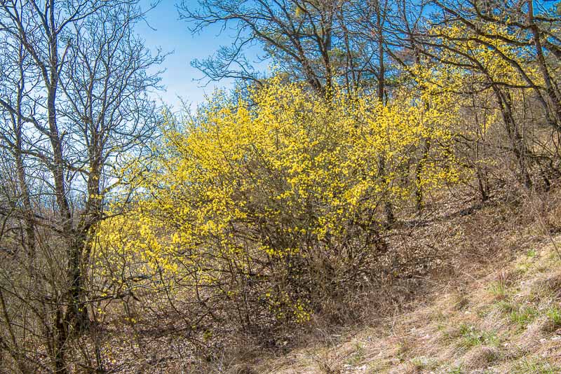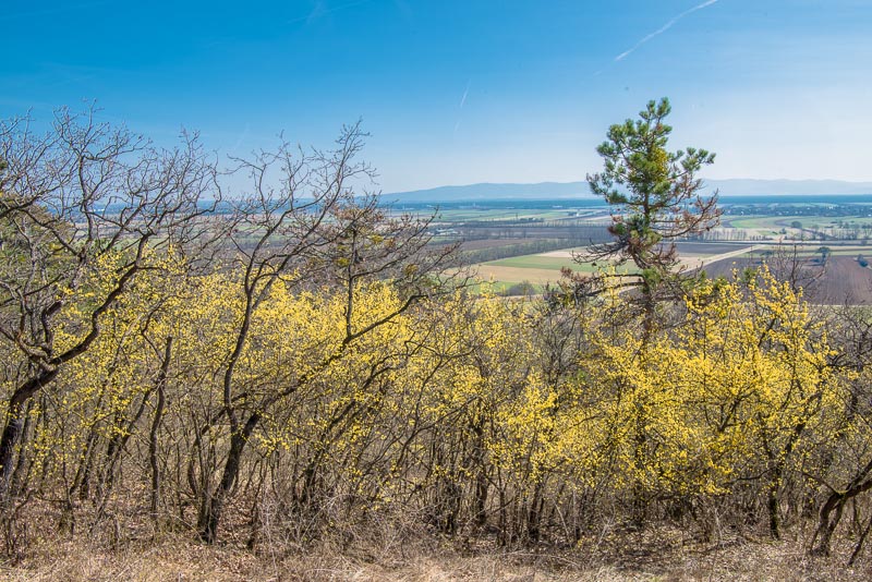 Wieder zurück bei den Weingärten, auch am Waldrand viele Dirndlsträucher.