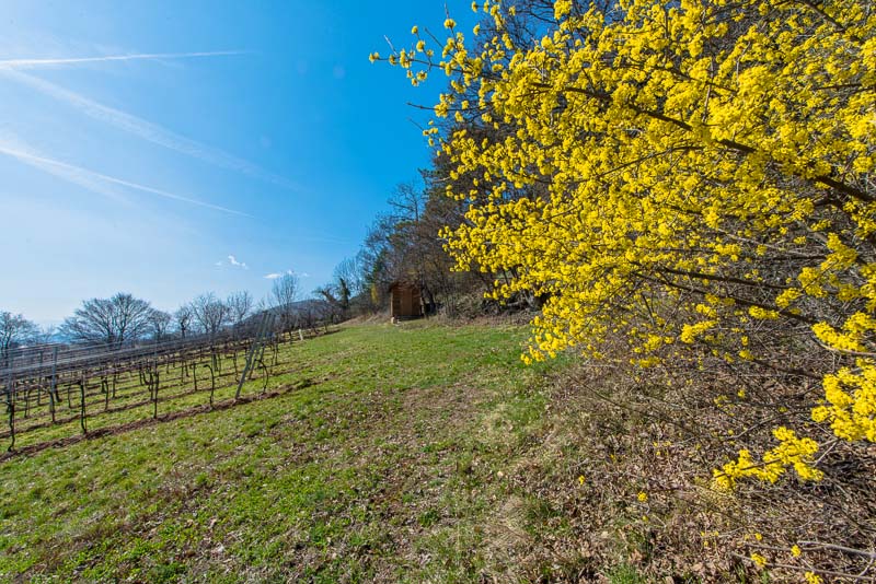 Ich klettere durch´s Gestrüpp oberhalb der Weingärten - hier gibt es reichlich Dirndlsträucher und ein Stück Trockenrasen.