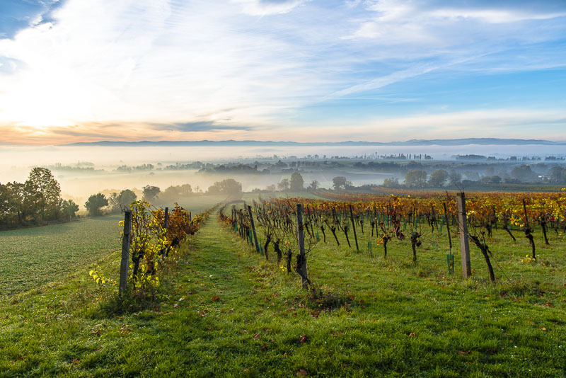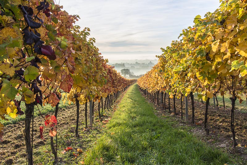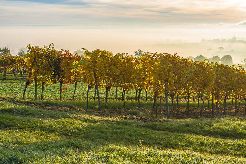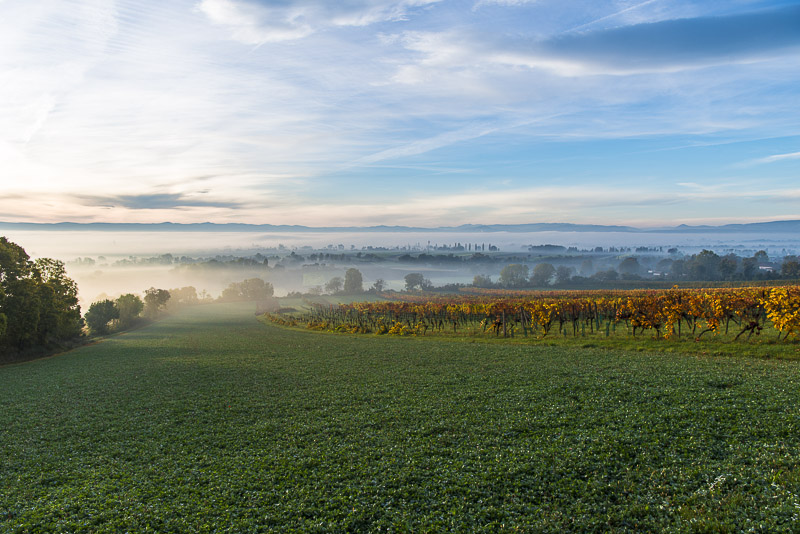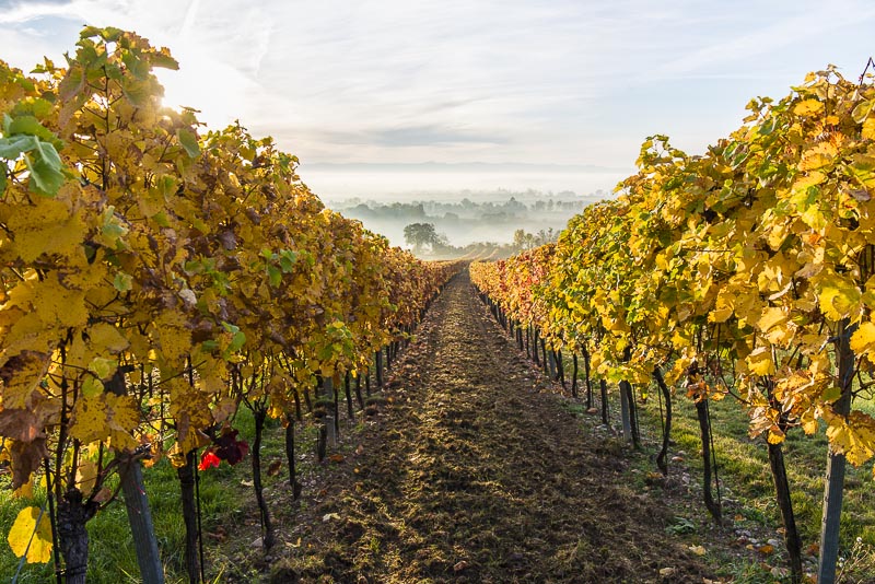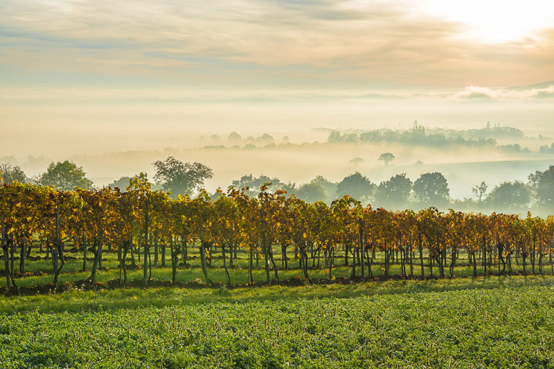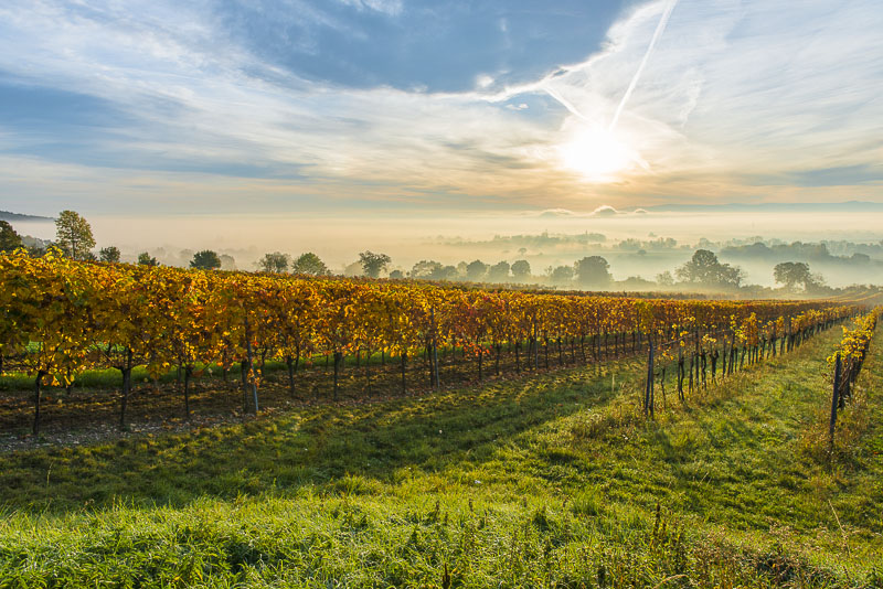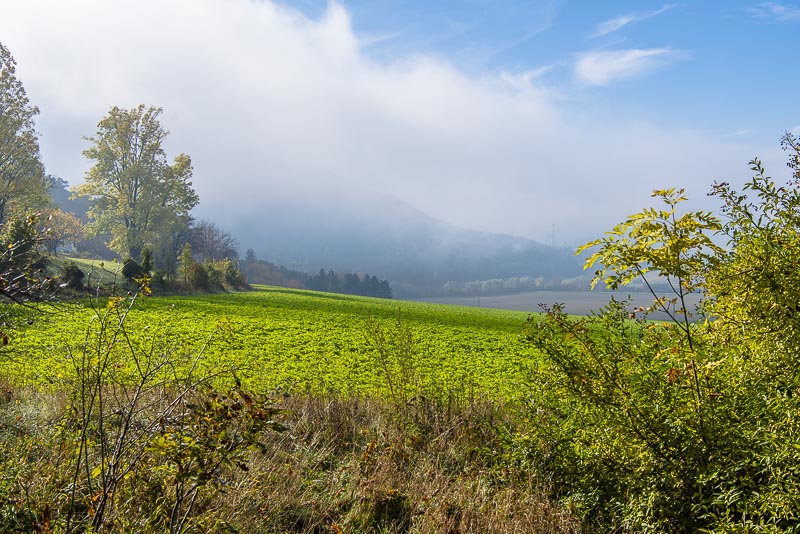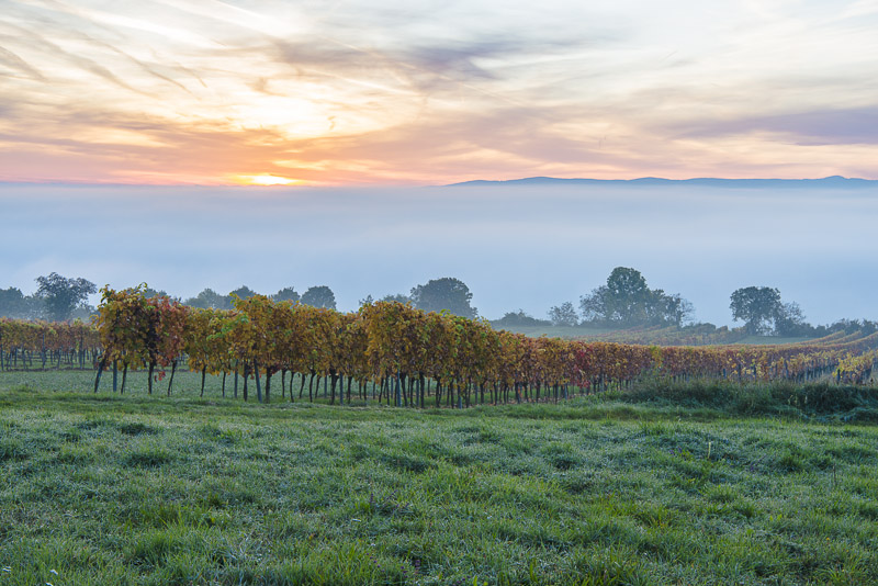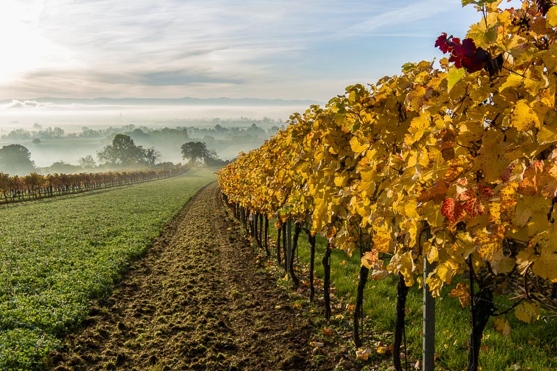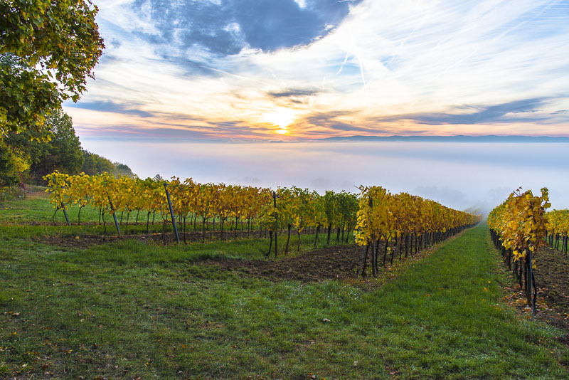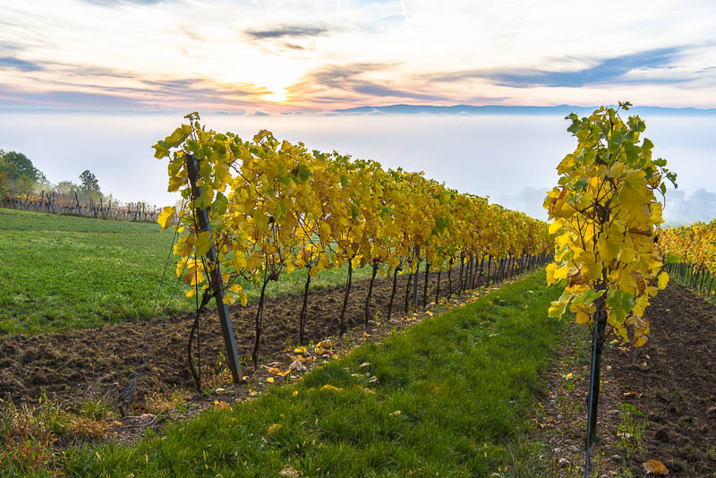 Nebeltage beginnen, und gestern schon zog am Vormittag Nebel hin und her. Ich bin daher kurz nach 7 Uhr und noch vor Sonnenaufgang im Weingarten.