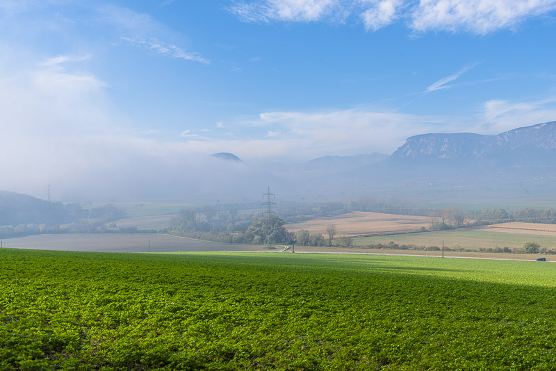 Oben bei den Fischauer Bergen ist herrlicher Sonnenschein.