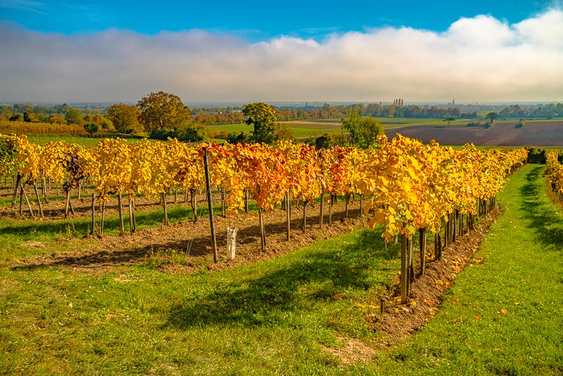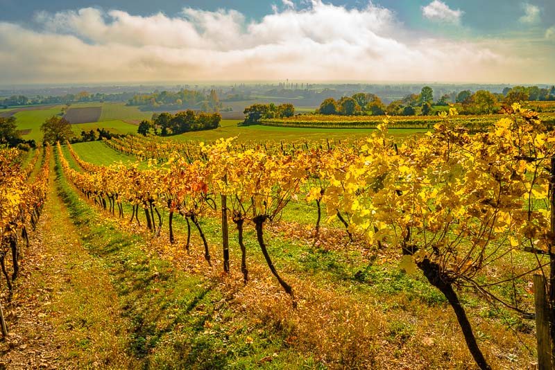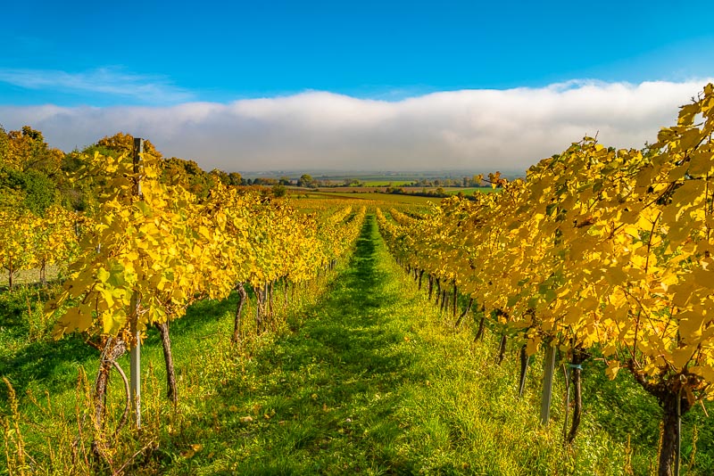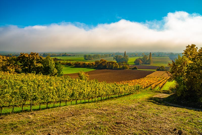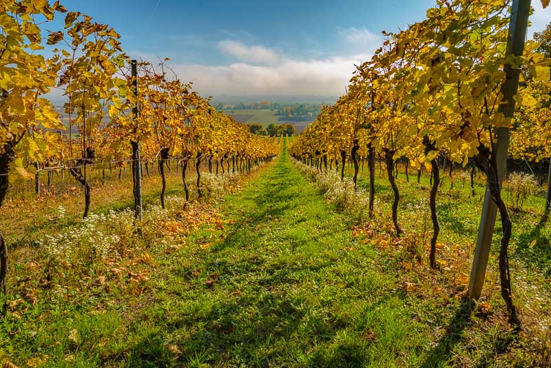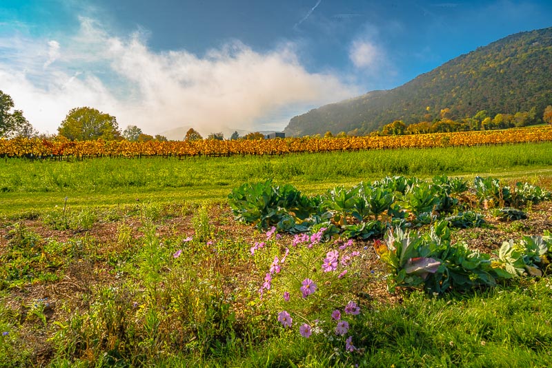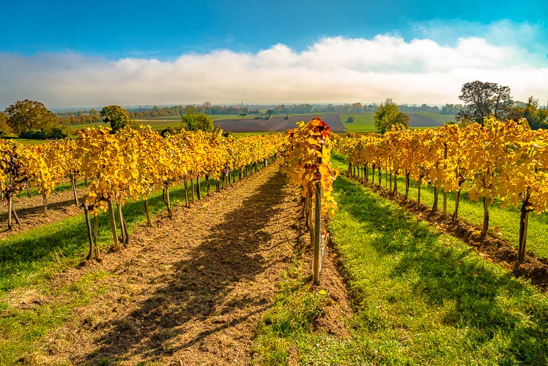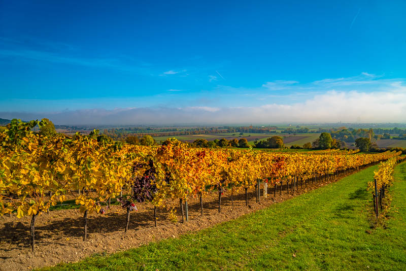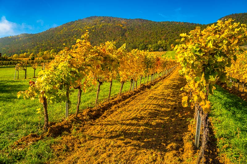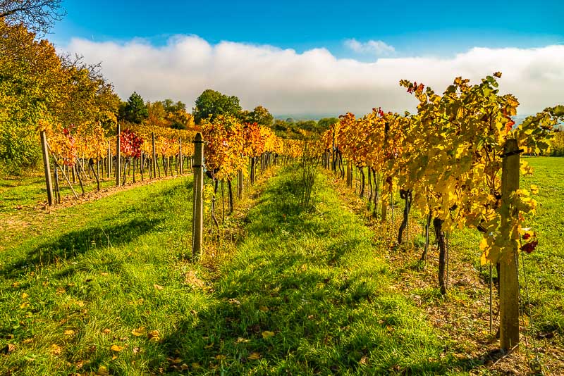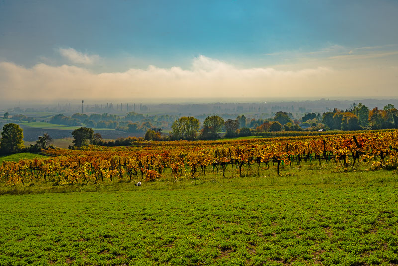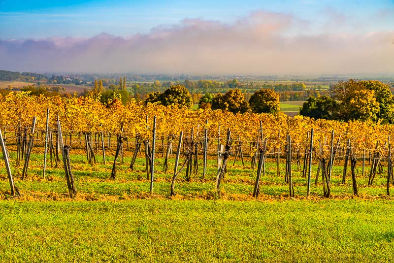 Heute früh ist es neblig. Gegen Mittag lichtet sich aber der Nebel und die Sonne kommt heraus. Ich beschließe, mit Lucy und Bella durch die Weingärten zu wandern.