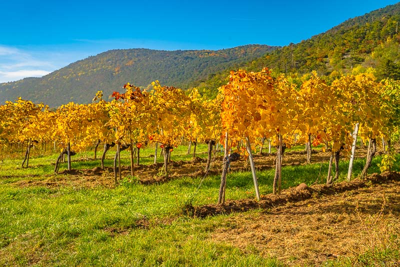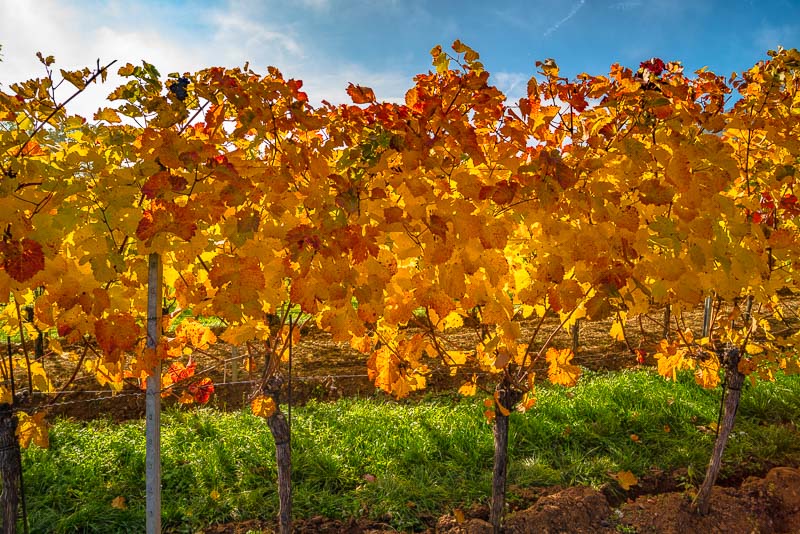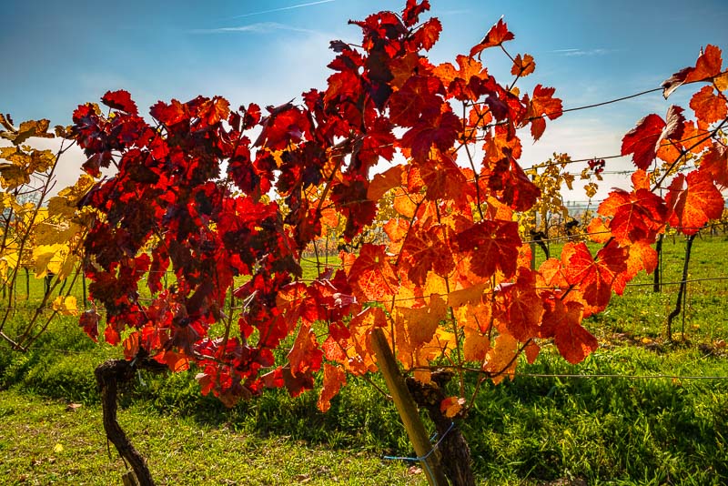 Manche Weinsorten bekommen rote Blätter statt gelbe.