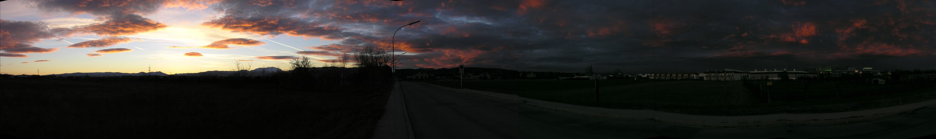 270 Grad - Panorama mit Wechsel, Semmering, Schneeberg. Ganz rechts das Einkaufszentrum Fischapark.