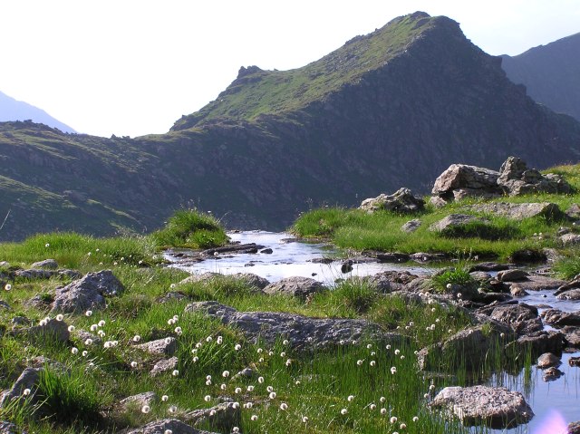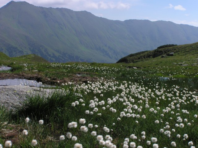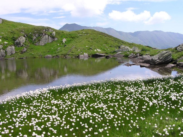 Eine andere Lacke mit üppig wachsendem Wollgras (Eriophorum Scheuchzeri)