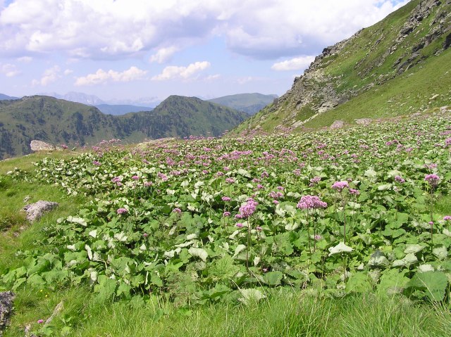 Herrliche Blumenwiese zum Grünsee hinunter.
