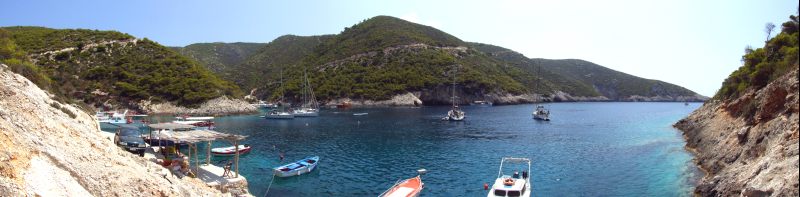 Panorama des kleinen Hafens von Limni Keriou. Hierher oder ins Bild klicken für eine größere Darstellung.