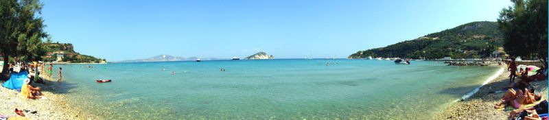 Noch einmal ein Panorama, diesmal mit Zoom. Die Bucht von Laganas/Keri. Hierher oder ins Bild klicken für eine größere Darstellung.