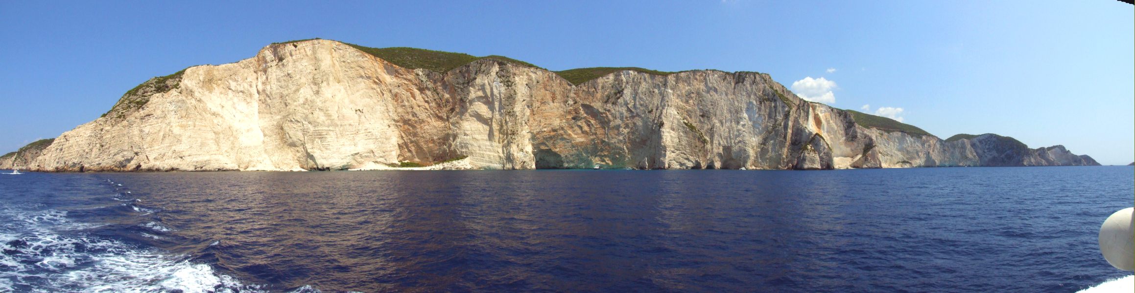 Ausgedehnte Felswände der Westküste von Zakynthos.