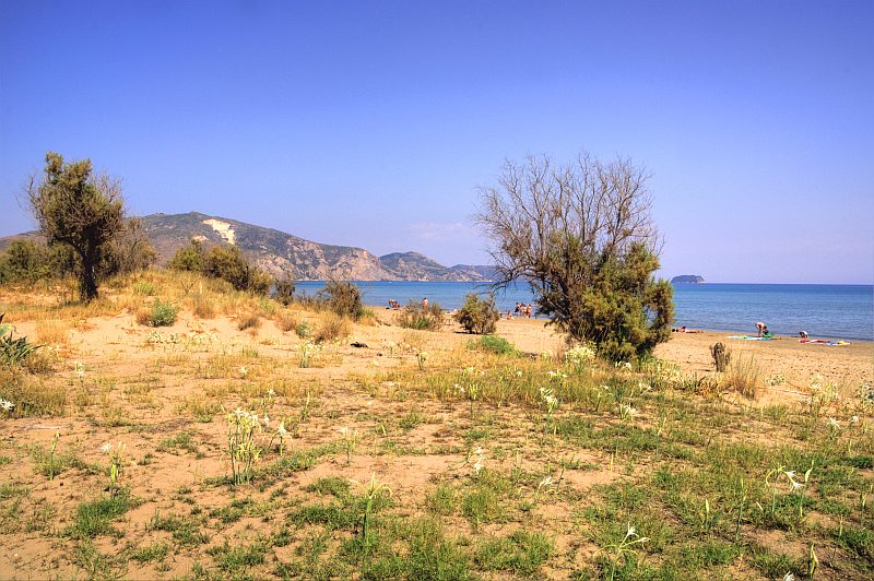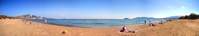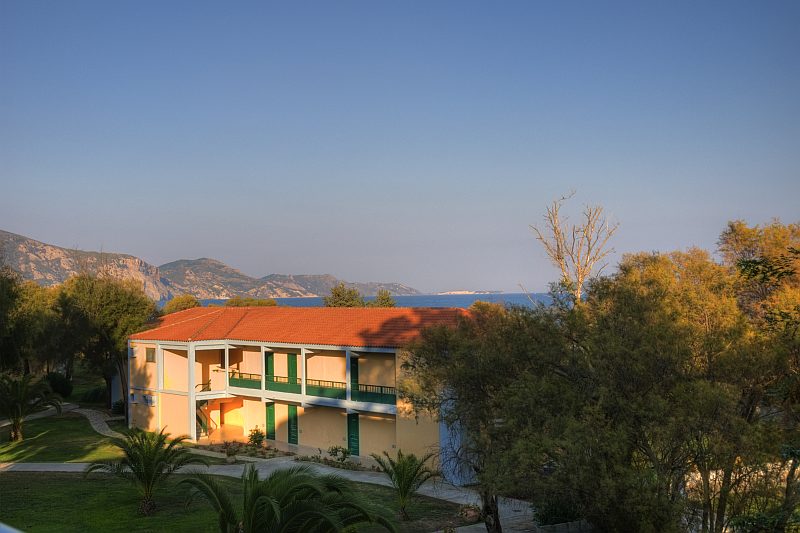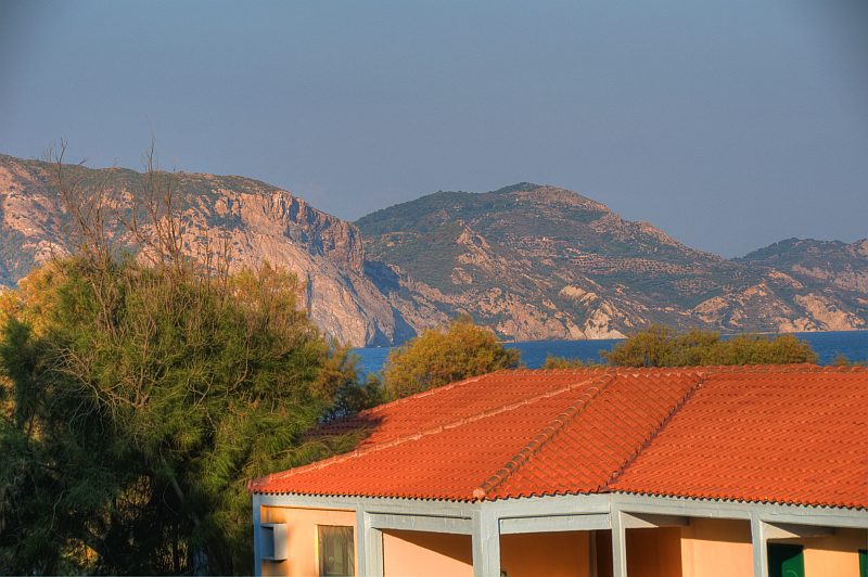 Diesmal haben wir ein Zimmer im Haupthaus, aber durch die Lager im 1. Stock sehen wir auch von hier das Meer. Die wunderschöne Abendstimmung, Blick zur Halbinsel von Vasilikos.