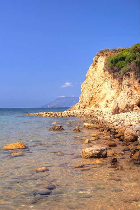 Panoramaaufnahme der Bucht von Gerakas, vom linken Ende aus gesehen. Hierher oder ins Bild klicken für eine größere Darstellung.
