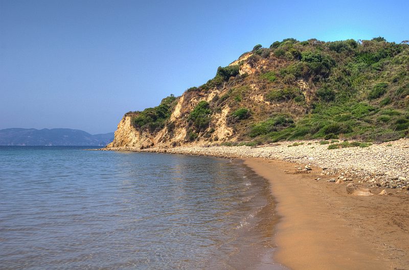 Am gegenüberliegenden Ende des Strandes: Blick nach Westen zur Halbinsel Keri.