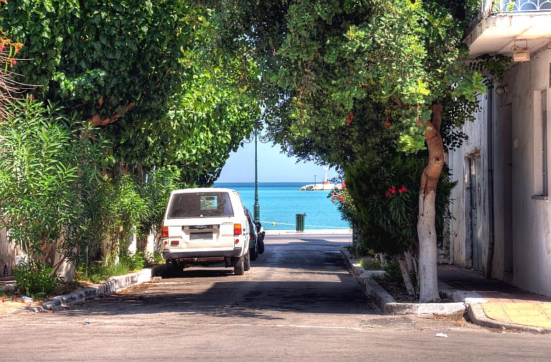 Blick durch die engen Gassen hinaus aufs Meer.