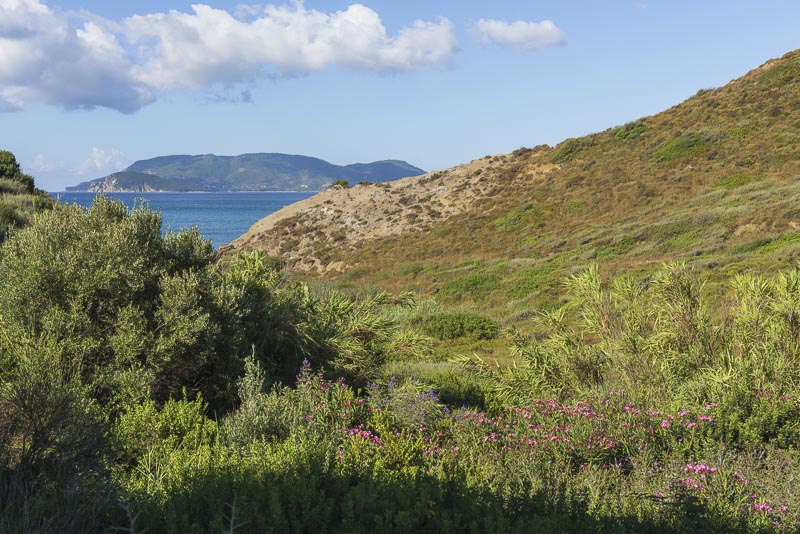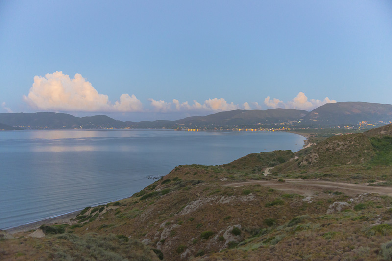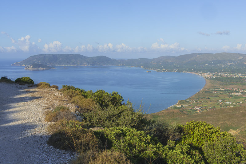 Blick hinunter auf Kalamaki, dahinter Laganas.