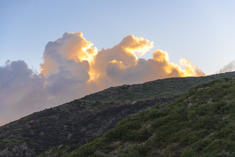 Alexander Freiler, ein Freund aus Winzendorf, war Anfang Juli auch hier und hat mir ein Bild des nächtlichen Brandes geschickt. Brände sind hier meist gelegt, und das passiert oft in der Nacht, weil da Löschflugzeuge nicht mehr fliegen können.