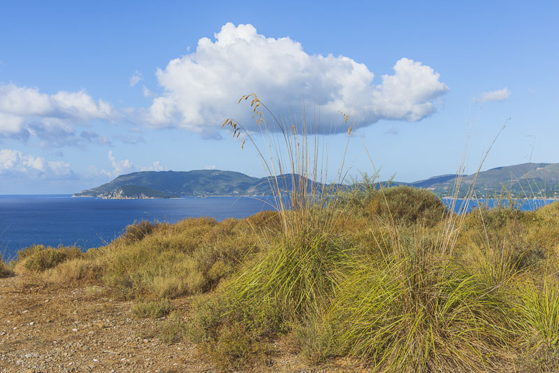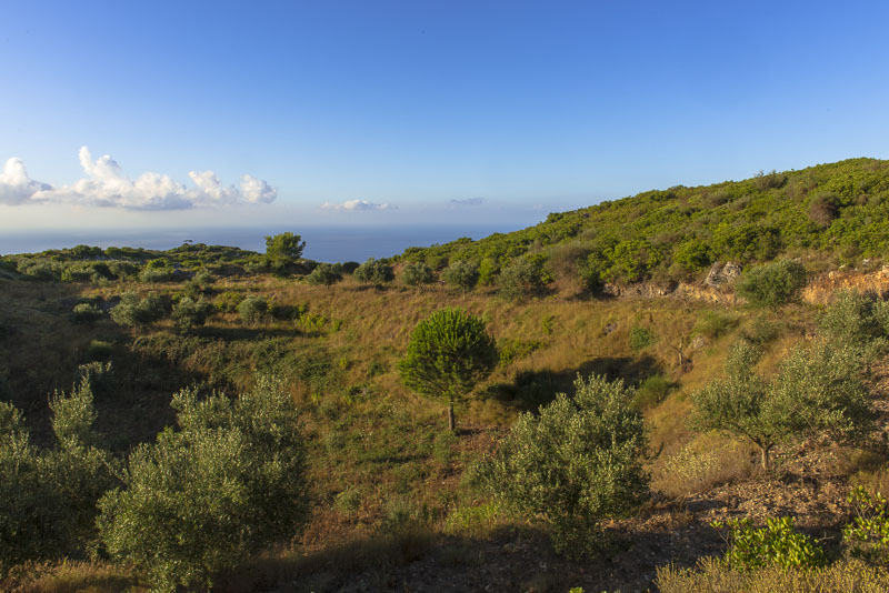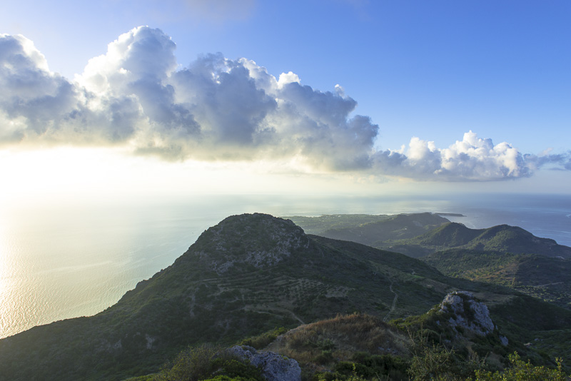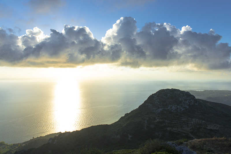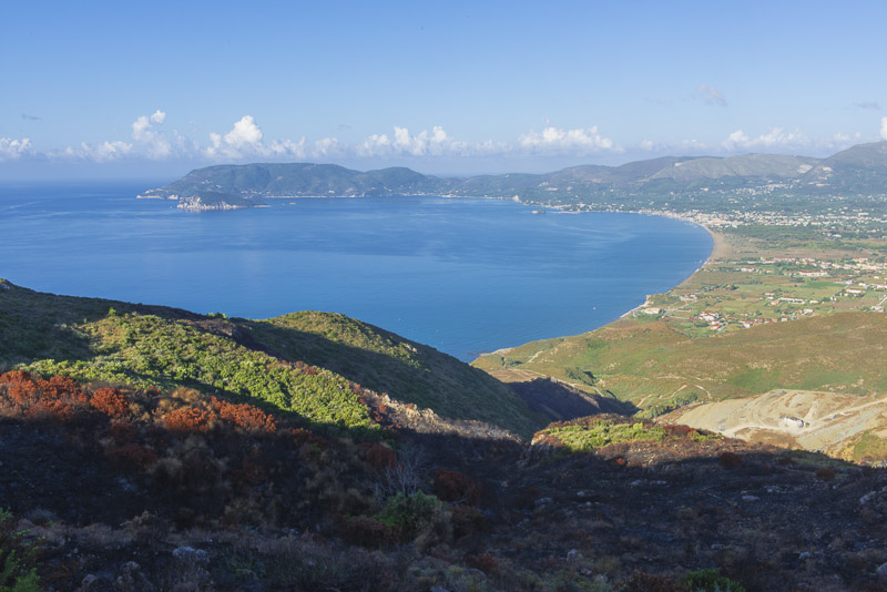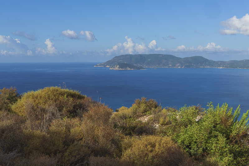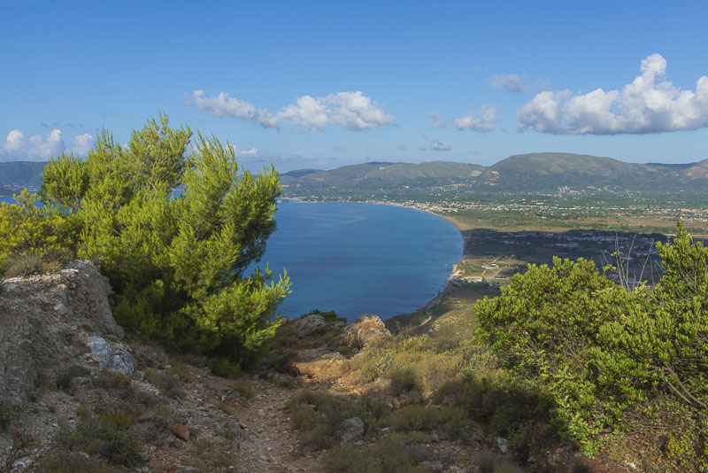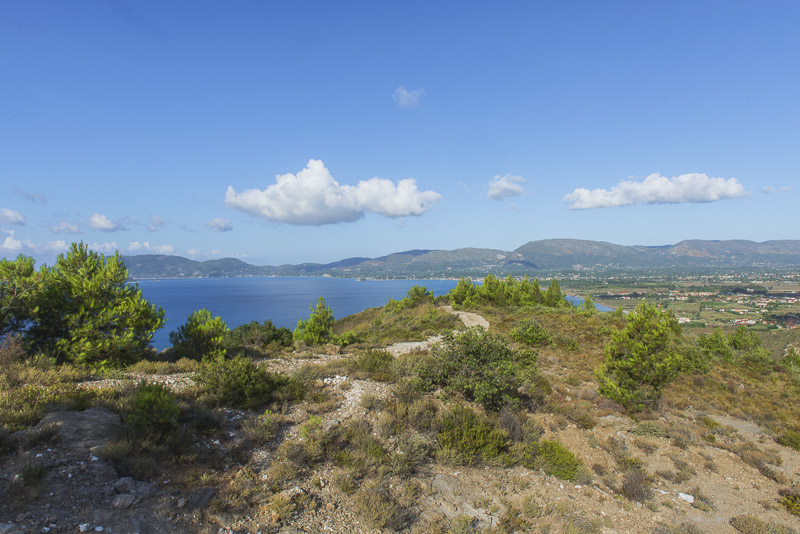 Panoramablick vom Westgipfel des Skopos, Zakynthos. Hierher oder ins Bild klicken für eine größere Darstellung.
