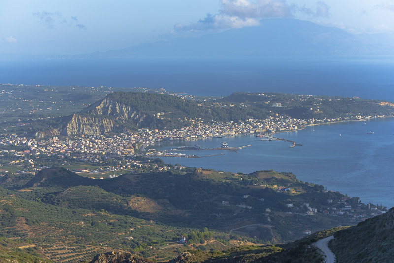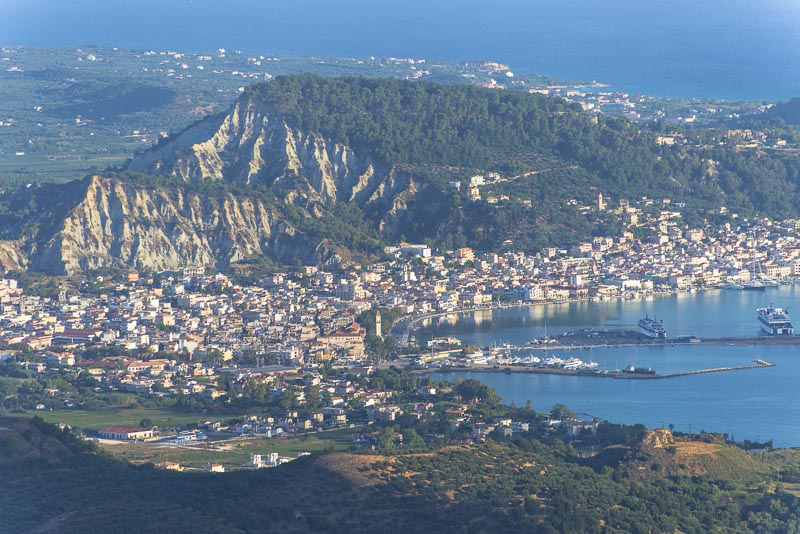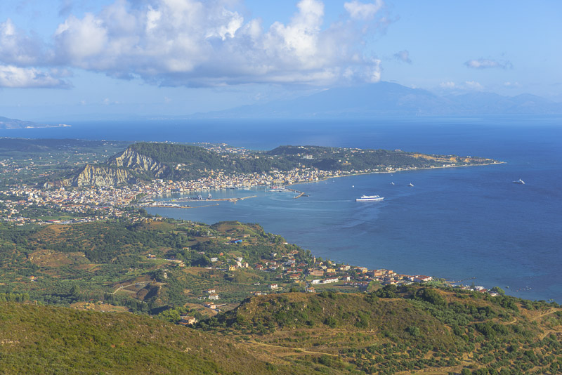 Zakynthos Stadt und Kefallonia, beim Abstieg.