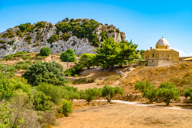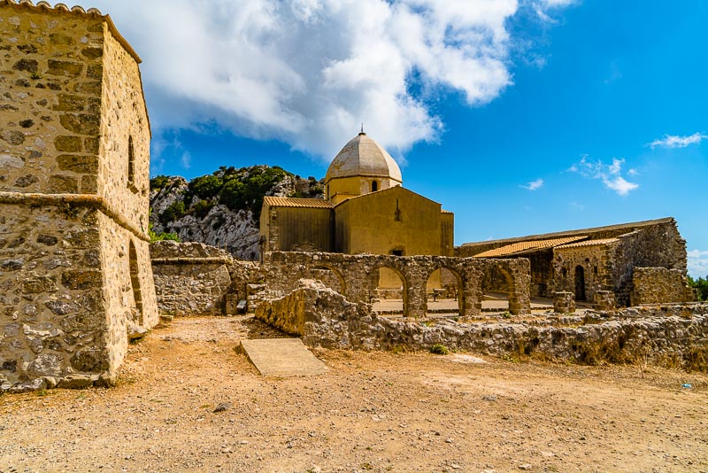 Hier finden sich, auf einem alten Tempel errichtet, die Reste eines Klosters.