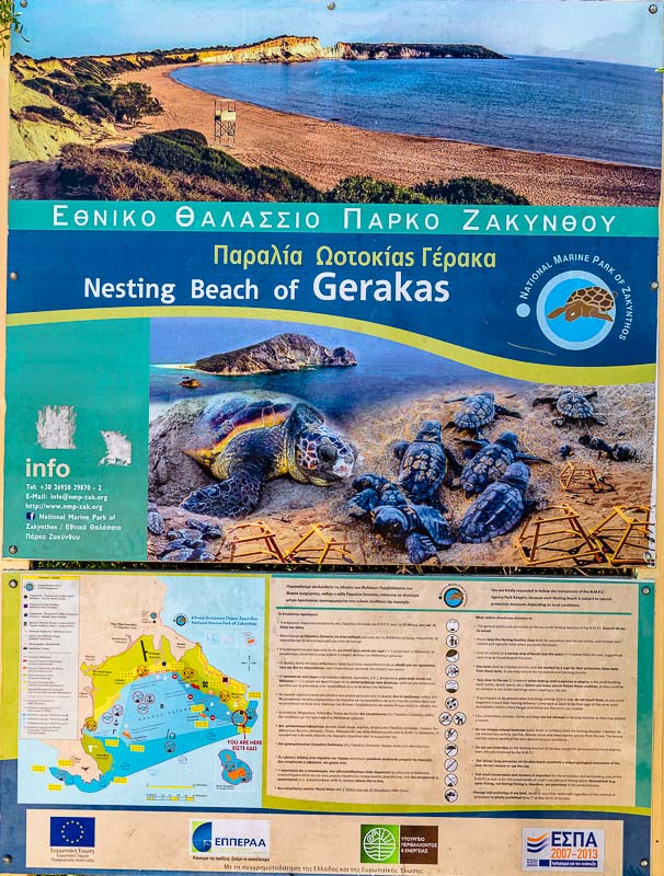 Wir sind vom Berg zurück und bis zum Ende der Straße gefahren - zum Gerakas - Strand, einem großen Nestgebiet der Unechten Karettschildkröte (Caretta Caretta).