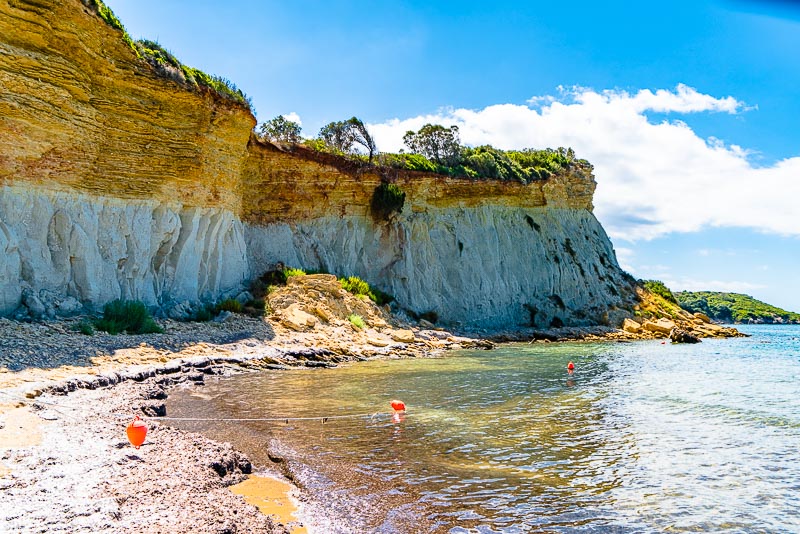Die Wand am südlichen Ende des Strandes von Gerakas.