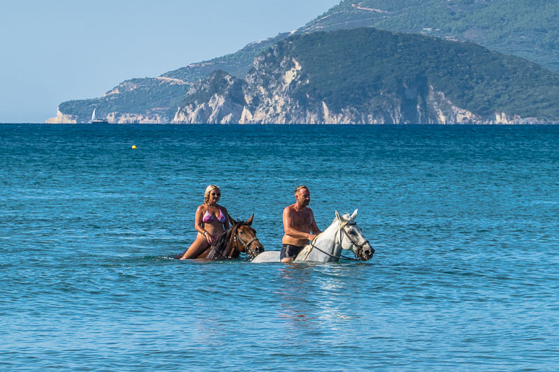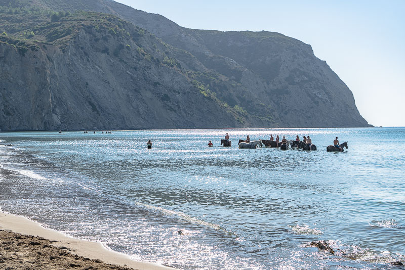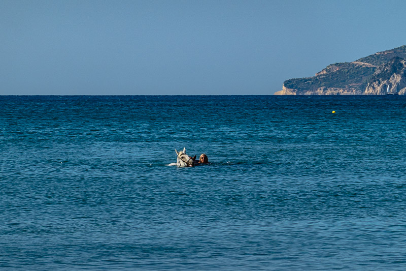 Hier bei dieser zweiten kleinen Sandbucht endet eine Sandstraße, auf der diese Pferde wohl zum Bad gekommen sind.