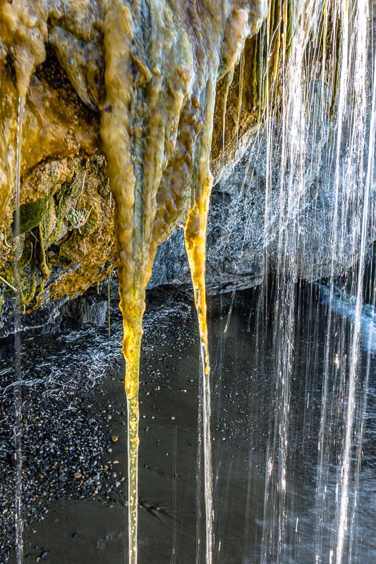 Ich warte jetzt eine halbe Stunde, bis der kleine Wasserfall in der Sonne ist.