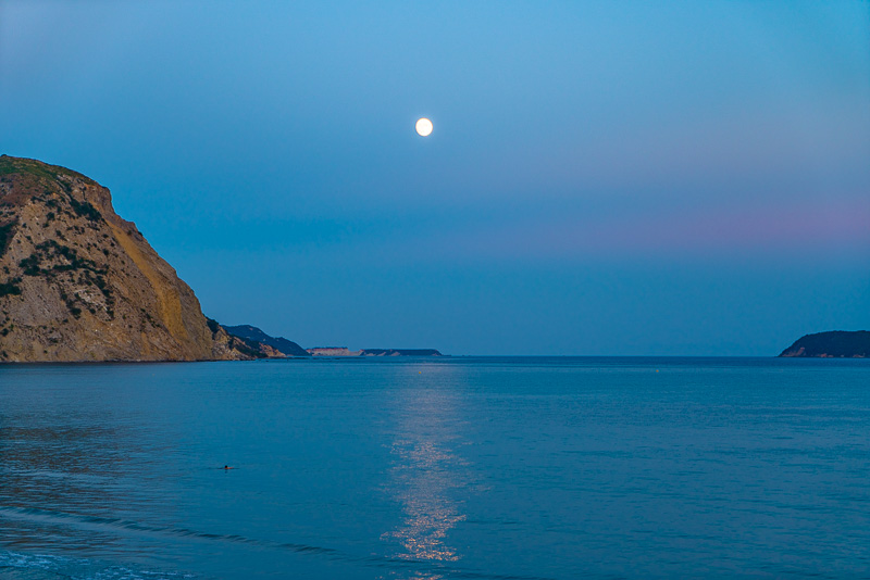 ... und schauen zu, wie der Mond weiter steigt und es langsam dunkel wird.