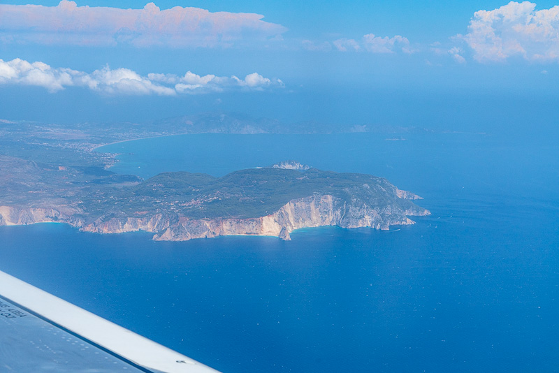 30.8.: Approaching Zakynthos - we shall fly a large curve around the Keri peninsula in the forground and land immediately after the cove behind.