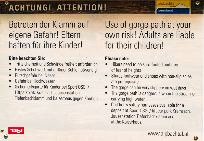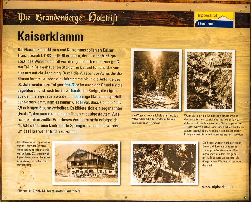 After yesterday´s rain, the sky is overcast today. Better stay down on such a day, so we decide to drive to the Kaiserklamm near Brixlegg ("emperor´s gorge" - the emperor Franz Josef is said to have had fun looking at the workers drifting trunks through the gorge).