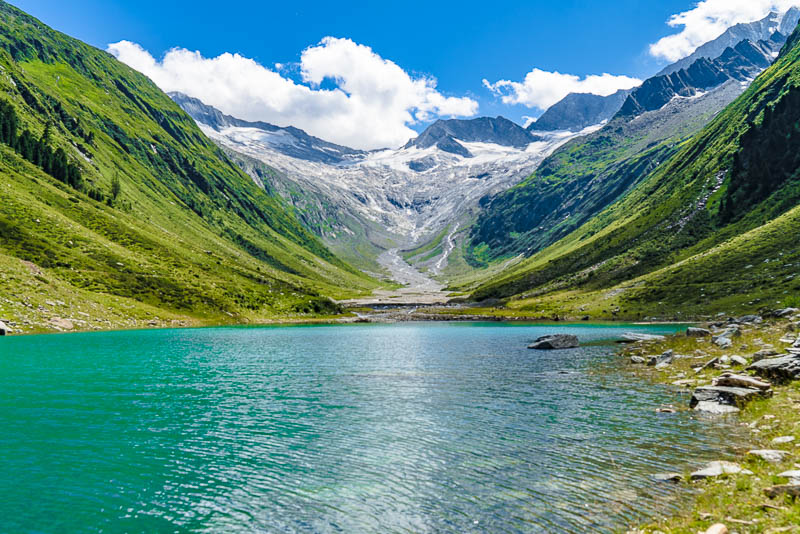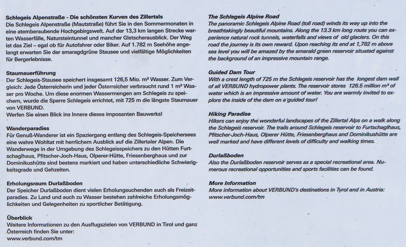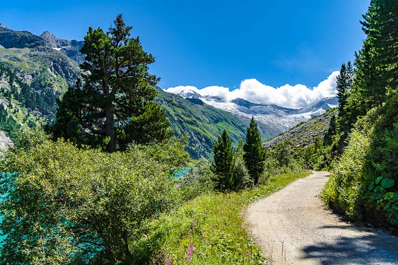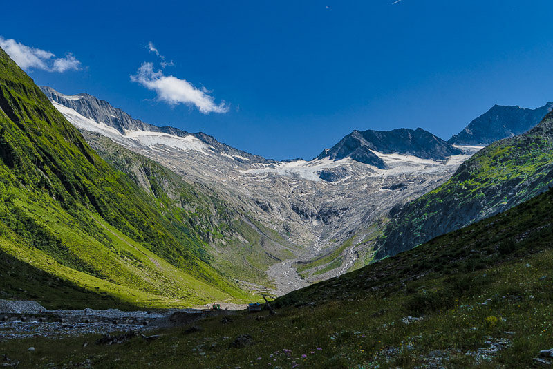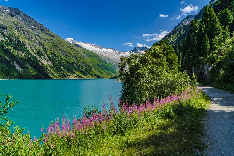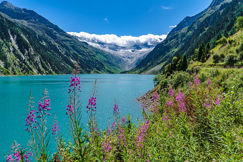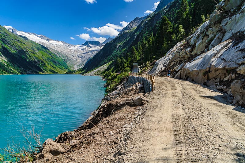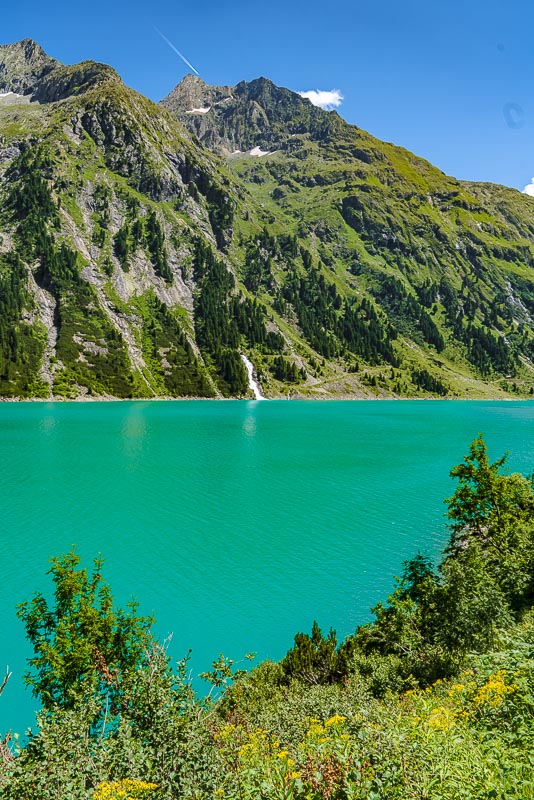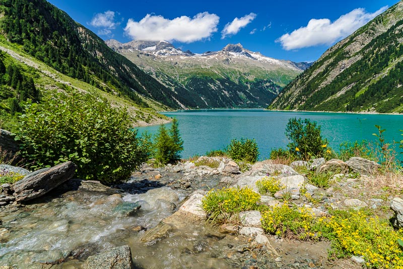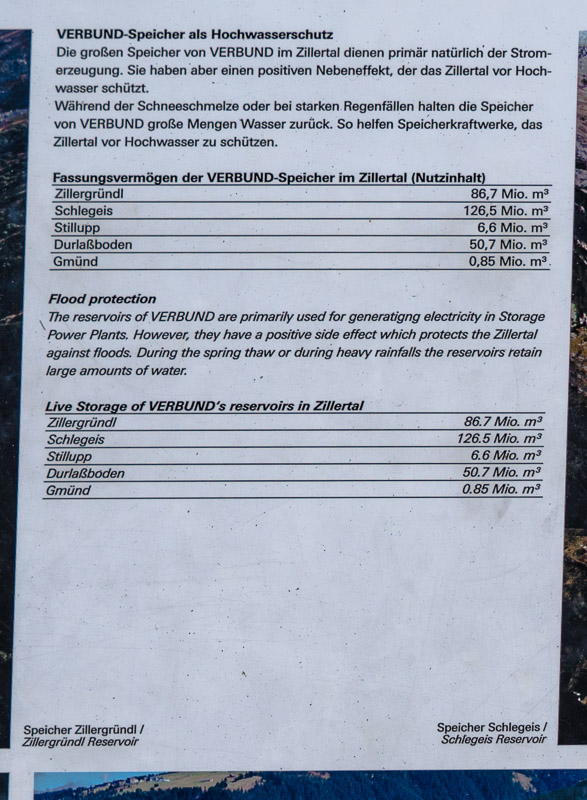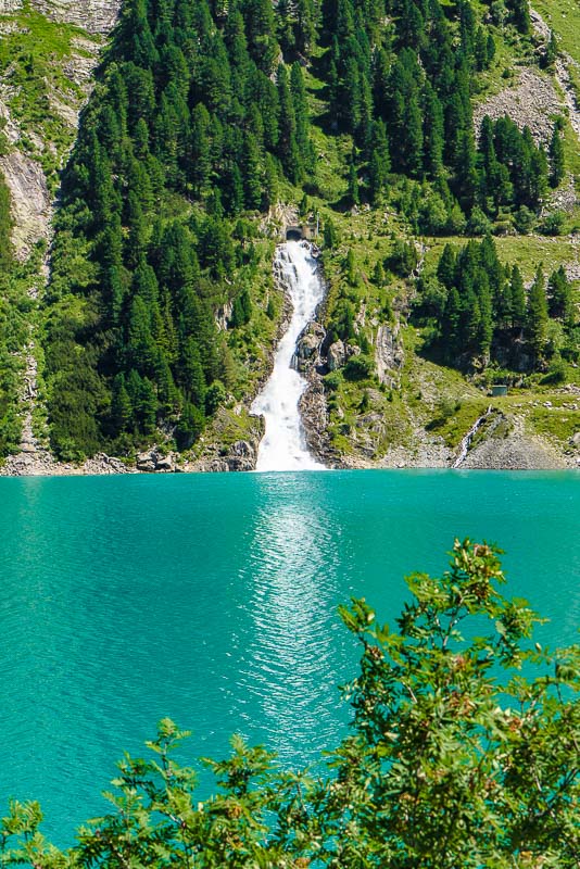 Most of the water from the neighbouring Zemmgrund valley is conducted through a long tunnel into the Schlegeis reservoir geleitet. Thus, building another reservoir is avoided.