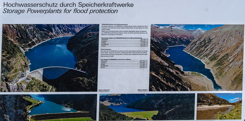 The Schlegeis reservoir is one of several reservoirs damming up water which can be hold back in case of high water - a big advantage for the villages beneath, another advantage in times of wind- and solar electricity because the huge reservoir can buffer times of high consumption, night or calm. If there is another reservoir in the valley beneath, water can even pumped back up in time of high electric yield - for instance clear sunshine with strong wind.