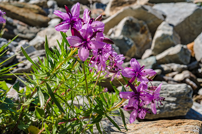 In the gravel, another kind of willowherb is growing: Alpine willowherb (Epilobium fleischeri)