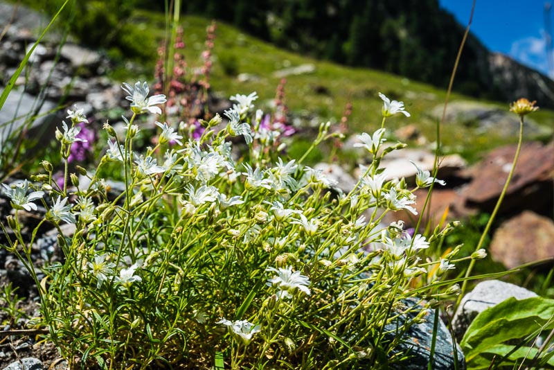 Here also grows the Alpine subspecies of field mouse-ear (Cerastium arvense subsp. strictum) - thanks a lot to Nikolaus Künzle for identification and explanation. The Facebook group for plant identification (in German, sorry) really is of great help ...