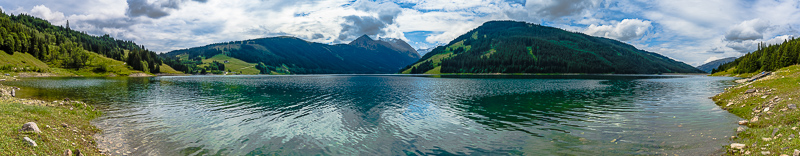 Panoramic picture of the Durlassboden reservoir, from the Northern lakeshore. Click here or into the picture for a larger display.